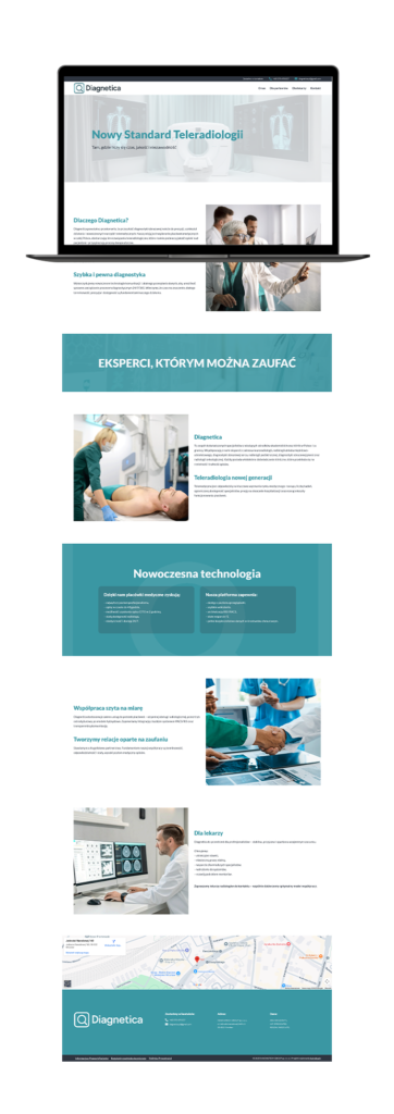 Powstała strona diagnetica.pl to nowoczesny one page, który w skondensowanej formie prezentuje najważniejsze informacje o firmie, jej ofercie i możliwościach współpracy, bez konieczności korzystania z rozbudowanego systemu podstron. Taka struktura ułatwia użytkownikom szybkie odnalezienie kluczowych treści, skraca drogę kontaktu i wzmacnia profesjonalny wizerunek marki w oczach partnerów oraz lekarzy.