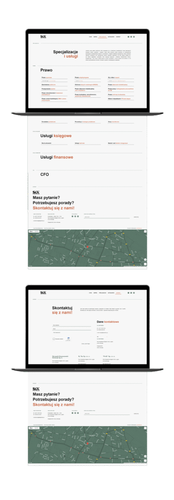 • Kontakt – łatwy dostęp do danych kancelarii wraz z formularzem kontaktowym.